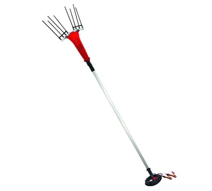 Il sistema a doppio pettine con 10 denti in carbonio garantisce una copertura ampia e una raccolta precisa, senza danneggiare i frutti o le piante. La velocità di lavoro raggiunge i 1200 colpi/minuto, mentre l’asta telescopica in alluminio si estende da 1,5 a 2,5 metri, permettendo di operare anche su alberi alti.